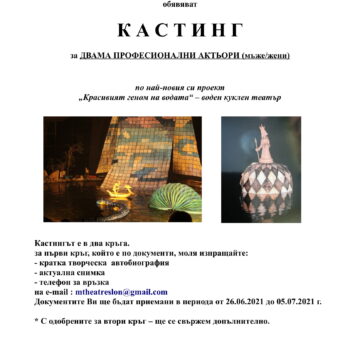 КАСТИНГ за професионални актьори за новия си проект “Красивият геном на водата”